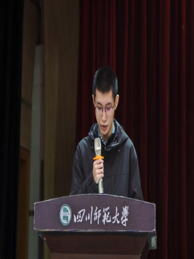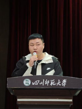 会议伊始,学院本年度师范实习学生代表曹洋,博物馆实习学生代表叶汝阳分别就本年度实习做发言。曹洋同学围绕其本年度前往凉山地区普格中学的顶岗支教经历与成长做了发言阐释,他提到本次的实习经历让他感悟到了教育事业和做一名老师最本真的质地,他告诉同学们要珍惜回顾实习时光,领会教师责任担当与“扎根”的意义。叶汝阳同学围绕前往成都博物馆、金沙博物馆的实习见闻做了发言。他提到“艰难困苦,玉汝于成”每天的往返奔波、岗位值守以及面对不同观众的讲解服务,都让大家得以近距离观察社会、体悟百态。