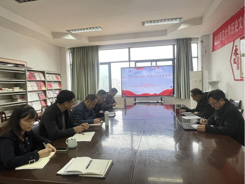 11月3日,历史文化与旅游学院党委召开理论学习中心组(扩大)学习会,集中传达学习党的二十届四中全会精神和习近平总书记重要讲话精神,并围绕贯彻落实开展交流研讨。会议由学院党委书记陈波主持,学院领导班子成员、党委委员及科级干部参加学习。