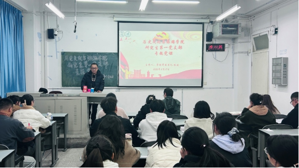 2025年11月18日,历史文化与旅游学院研究生第一党支部于狮子山校区第六教学楼402教室,开展“学习贯彻党的二十届四中全会精神”专题党课活动,学院党委书记陈波作为支部联系人主讲,支部书记解永春主持,支部全体党员同志参加会议。