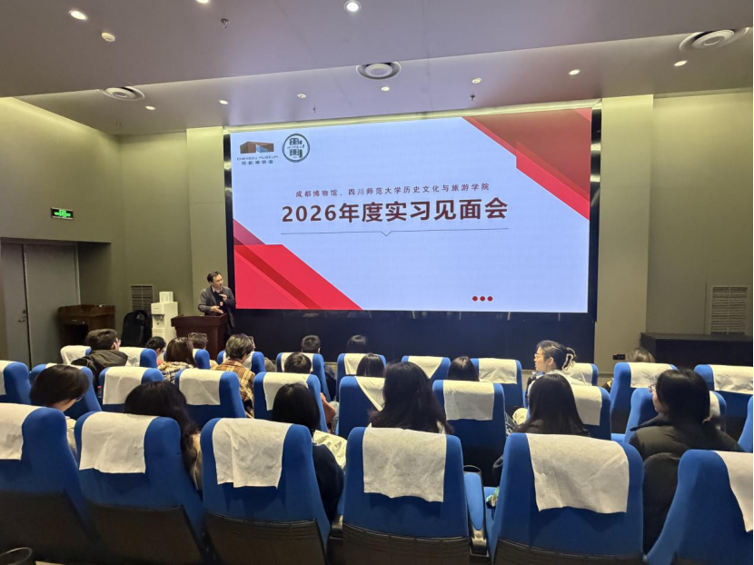 朱晓舟代表学院对成都博物馆给予的信任与支持表示衷心感谢。他指出,专业实习是将课堂理论知识转化为实践能力的关键环节,也是学生深入了解专业工作实际运作的重要窗口。强调同学们要以谦逊的态度投入实习工作,主动融入团队,积极参与各项任务,在具体实践中积累经验、提升专业技能。希望同学们能将所学的历史文化知识与实习岗位需求相结合,在实践中发现问题、思考问题、解决问题,真正实现学有所用、用有所成。