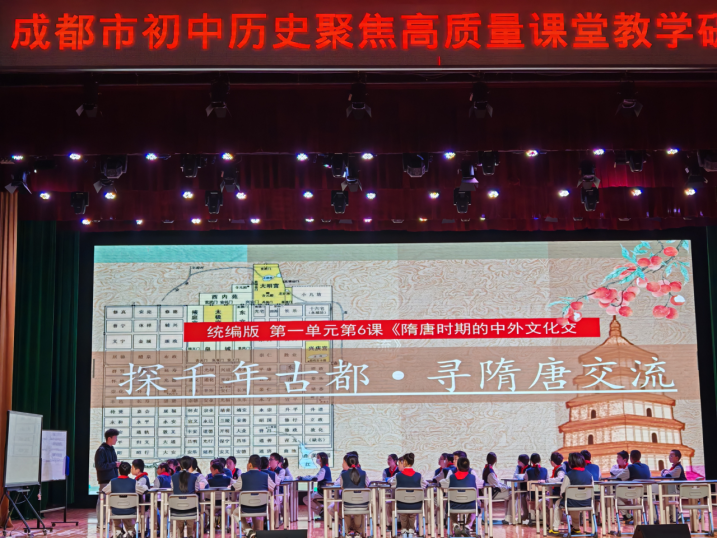 本次市级联合教研活动以初中历史高质量课堂教学建设为核心主线,紧扣2025年修订的义务教育历史新课标要求,围绕统编教材《中国历史》七年级下册第六课《隋唐时期的中外文化交流》开展同课异构课例展示,同步进行大单元教学设计研讨与专家点评,汇聚全市各区骨干历史教师、教研专家齐聚一堂,共同探索新课标落地路径、破解核心素养培育难点,助力区域历史教研提质增效、资源共建共享。