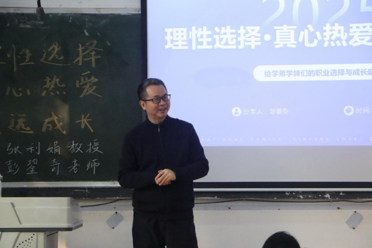 最后,彭鋆奇结合自身的职业成长经历向同学们分享自己的感悟:坚持教育一条主线、坚持不辜负任何一段时光、坚持跨越发展的补课。